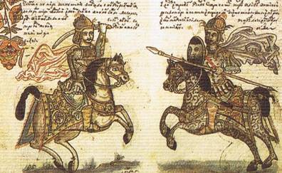 Ο πατέρας της Αρετούσας, όπως είπαμε, για να διασκεδάσει την κόρη του οργανώνει αγώνα κονταρομαχίας (γιόστρας). Στο αγώνισμα αυτό δύο ιππείς προσπαθούσαν να ρίξει από το άλογο ο καθένας τον αντίπαλο μ' ένα μακρύ κοντάρι χωρίς αιχμή.